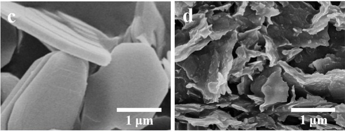 图1. h-BN粉末和OH-BN纳米片的SEM图