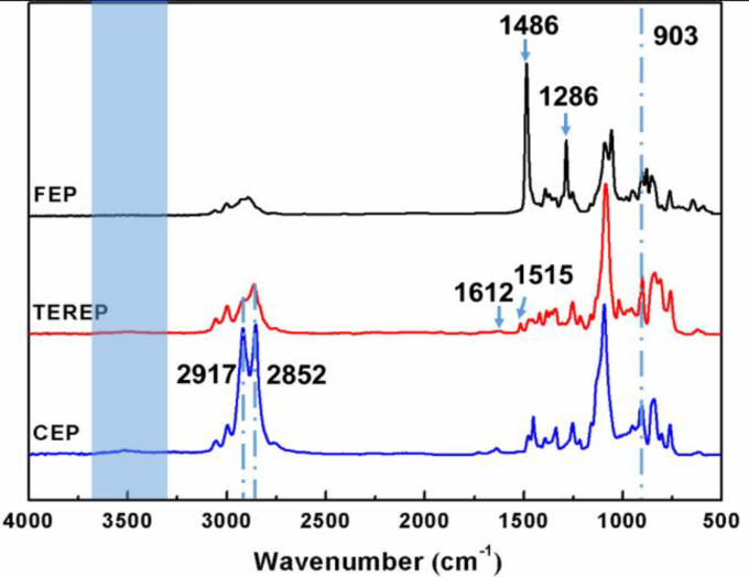 图1. FEP, TEREP和CEP的红外光谱图