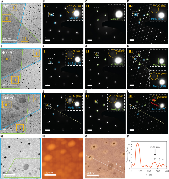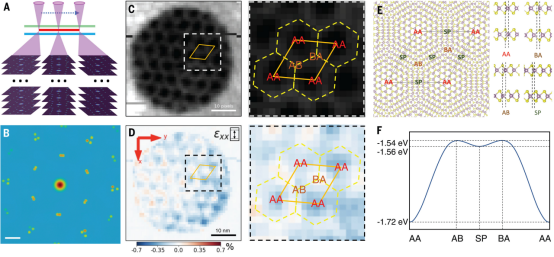 他们探索了2D vdW材料作为基底候选材料,因为它们可以容易地机械堆叠以形成纳米尺度的分离,用于限制原子和分子。尽管已经在石墨烯vdW材料之间的纳米尺度间隙中生长晶体,但这些研究并未考察扭曲外延生长状态下两个基底的影响。例如,仅存在于645到675 K温度范围内的单层b-CuI通过石墨烯封装在室温下被稳定,但未充分研究合成的b-CuI相对于扭曲的石墨烯双层的取向。为了制造2D低熔点金属,Briggs等人使用硅碳化物(SiC)作为模板,在顶部放置外延石墨烯(EG)而不是双层石墨烯。金属原子(Ga、In和Sn)被插入EG和SiC的界面中,产生了三层原子厚度的2D金属材料。这些2D金属被认为不是与顶部石墨烯层键合,而是与下面的Si原子共价键合,因此只有与SiC晶体的外延取向。