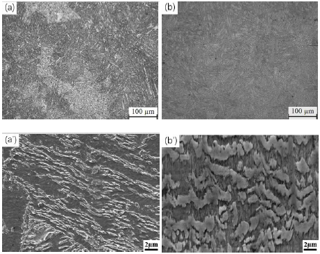 图3. 回火温度为620℃试样的OM 图和SEM 图