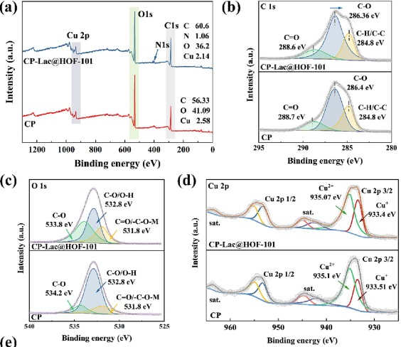 图7. CP和CP-Lac@HOF-101的XPS光谱