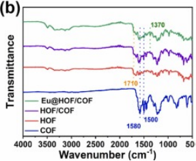 图4. HOF、HOF/COF、COF和Eu@HOF/COF的FT-IR光谱