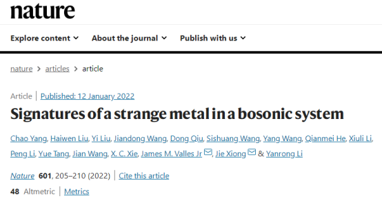 费米液体理论构成了我们理解大多数金属的基础:它们的电阻率来自于定义明确的准粒子以一定速率散射,在低温极限下,特征时间尺度的倒数与温度的平方成正比。然而,各种量子材料——特别是高温超导体,表现出奇怪的金属行为,在温度中具有线性散射率,偏离了这个中心范式。在这里,电子科技大学熊杰教授、李言荣院士课题组和美国布朗大学James M. Valles Jr等研究人员报道了玻色子系统中奇怪金属丰度的意外特征,而准粒子的概念并不适用。纳米图案化YBCO(YBa2Cu3O7−δ)薄膜阵列揭示了在扩展的温度和磁场范围内的线性温度和线性磁场电阻。值得注意的是,在库珀对形成的起始温度以下,低场磁阻以超导通量量子h/2e (e,电子电荷;h,普朗克常数)。同时,霍尔系数在测量分辨率内随着温度的降低而下降和消失,这表明库珀对而不是单电子主导了传输过程。此外,这个玻色子系统中的特征时标τ遵循一个没有本征能量标度的标度不变关系:ħ/τ ≈ a(kBT + γμBB),其中ħ是约化的普朗克常数,a是阶单位,kB是玻尔兹曼常数,t是温度,μB是玻尔磁子,γ ≈ 2。通过将奇异金属现象学的范围扩展到玻色子系统,研究结果表明,有一个超越粒子统计的基本原则支配着它们的传输。相关研究工作以“Signatures of a strange metal in a bosonic system”为题发表在国际顶级期刊《Nature》上。祝贺电子科技大学!