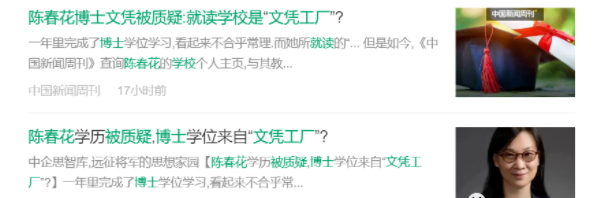 日前,被自媒体反复夸大炒作称“华为军师”的北大陈春花教授,近日再度被推上风口浪尖。她被质疑博士文凭买自“野鸡大学”,1年就拿到了博士学位,此外多名高校教授被发现与其博士毕业于同一所大学,学历风波持续发酵。