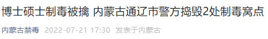 博士、硕士制毒被抓!系因工作不顺,得不到家人的认可...