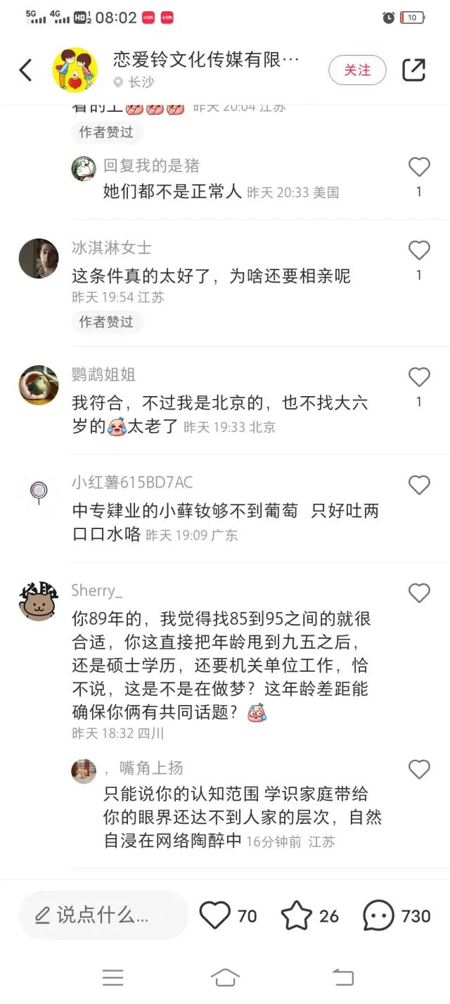 有网友表示,这名89年的男生虽然工作条件好,但毕竟89的年纪大了些,一下就要找95后年轻漂亮、高学历、工作好、家境好的女生,还是要求太高了。