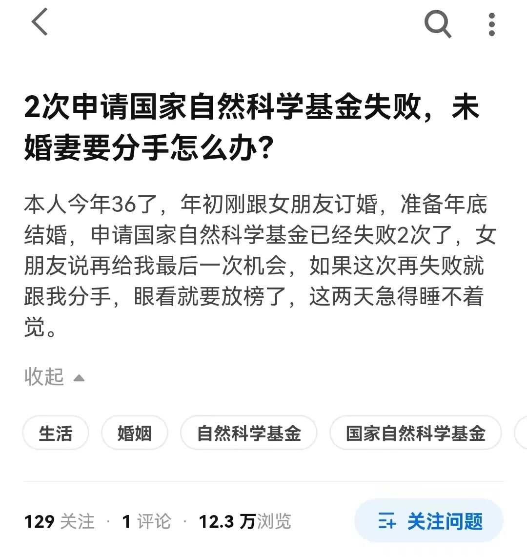女朋友要分手,因为申请国自然基金落榜!