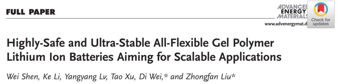 综上所述,本研究报道了未来可大规模应用的安全性好且具有优异柔性的锂离子电池。超薄、超轻和高度柔性的石墨烯薄膜用作LTO阳极和LCO阴极的集流体。由石墨烯薄膜制成的柔性LIB在超过10万次机械弯曲后仍表现出优异的稳定性,而没有容量损失。高柔韧性的石墨烯薄膜可以弯曲数万次而不会发生塑性变形。更重要的是,活性层与石墨烯膜之间的强粘附力有效地抑制了在剧烈弯曲条件下活性层的分层。独立式石墨烯薄膜可最大程度地减少电池中惰性成分的厚度,并同时提高质量能量密度和功率密度。比使用金属箔集流体的标准电池高4倍。此外,GO‐GPE表现出对液体电解质的强吸收性、宽的电化学窗口以及出色的热稳定性和电化学稳定性。与市售的Celgard隔膜相比,它还具有更高的离子电导率和更高的锂离子传递数。即使在极端恶劣的条件下,本文中使用GO‐GPE的柔性LIB仍具有出色的安全特性。可以预见的是,具有高能量和功率密度、卓越的安全性和出色可靠性的柔性电池将为未来的可穿戴电子设备和极端条件下的许多其他设备提供能量,柔性锂离子电池商业化应用即将成为现实!