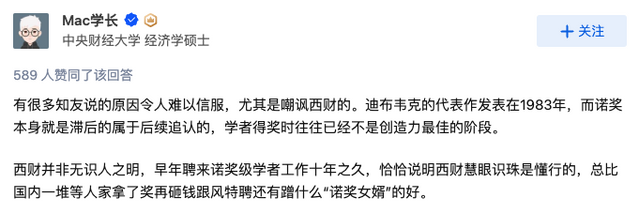 知乎上有用户认为,西南财经大学能在十多年前就聘来诺奖级学者,不仅不是“有眼无珠”,反而是“慧眼识珠”。