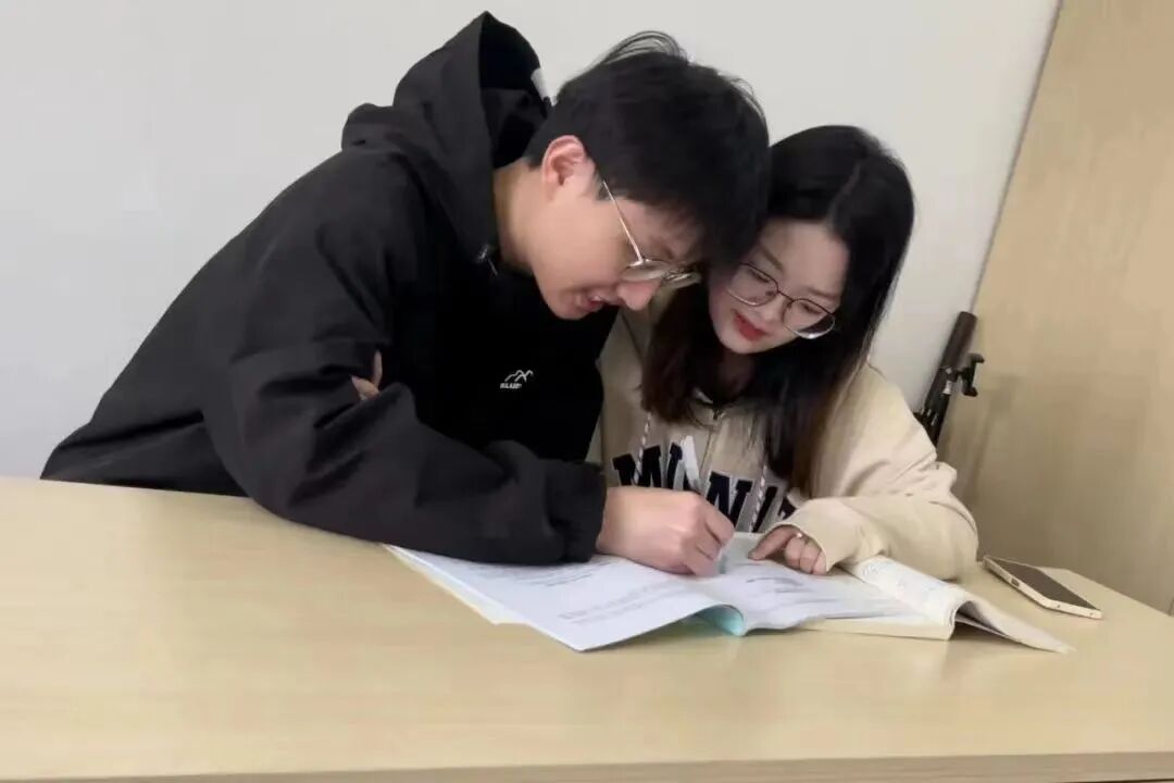 他们并肩自习的身影