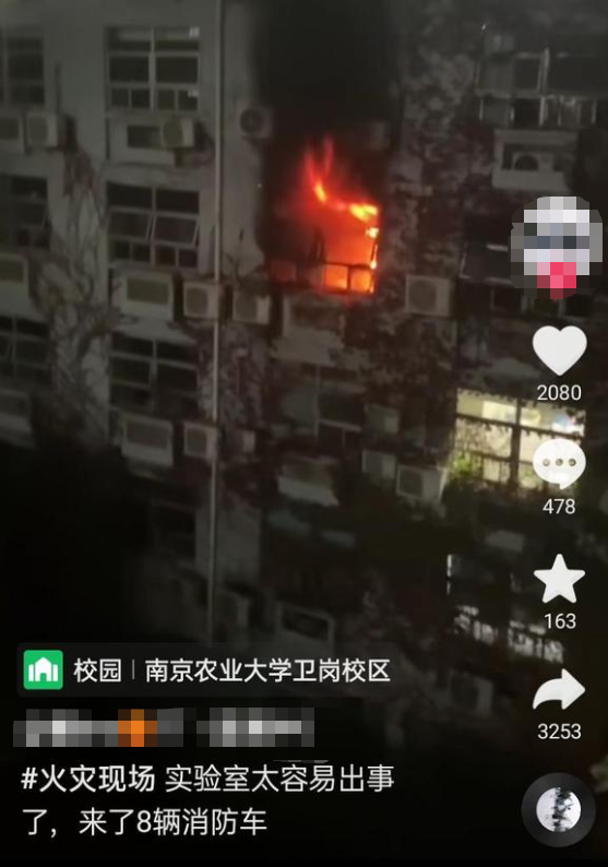 随后当天深夜,南京农业大学保卫处公众号“平安南农”发布《火情情况通报》:希望全体师生员工进一步提高安全意识,认真落实安全制度,扎实做好隐患排查,坚决杜绝侥幸心理,切实筑牢校园安全防线,谨防各类事故发生。