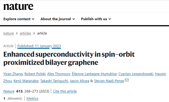 相关研究工作以“Enhanced superconductivity in spin–orbit proximitized bilayer graphene”为题发表在国际顶级期刊《Nature》上。