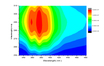 三维荧光光谱也称为激发-发射矩阵光谱,可快速同步扫描激发波长和发射波长,获取样品的荧光强度 。区别于激发/发射光谱等二维荧光光谱,三维荧光光谱能同时扫描并改变激发和发射波长,同步记录的荧光强度变化关系为二元函数 ,能更为全面、准确地表征待测物质的荧光特性。