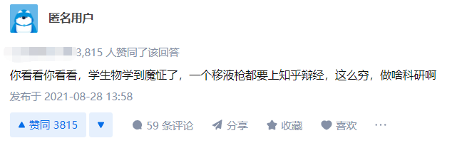 是学生物学魔怔了?如果研二进实验室没闯祸,很快就会有自己的专属移液枪了,至于没有的同学,还请努力。