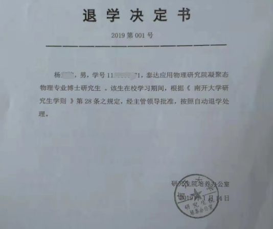 2021年8月,一名南开大学的硕博连读生杨某被退学的事引发热议,其中他也提到了和课题组师兄的矛盾: