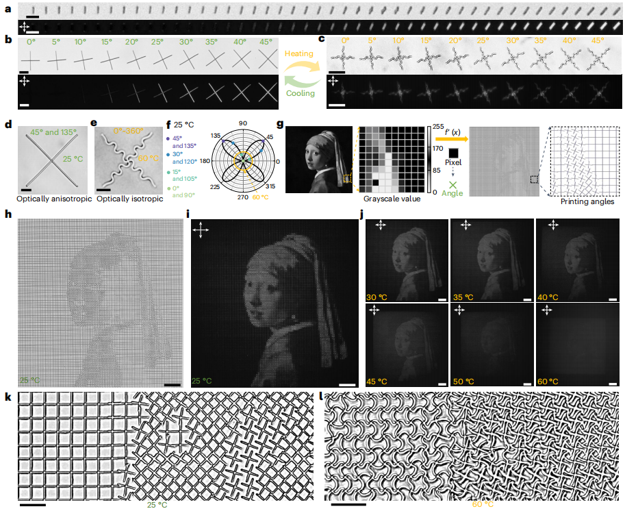 图6. 用于加密应用的具有可编程光学各向异性的可重构微结构的概念验证演示