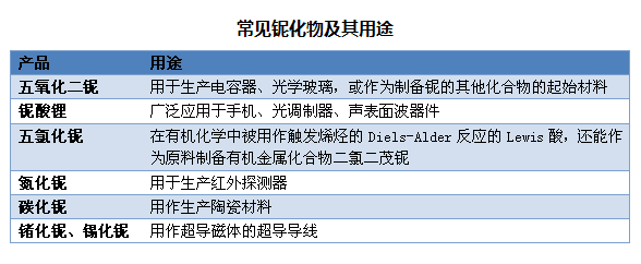 表2:常见铌化物及其用途