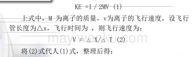 即离子的质量与其飞行时间的平方成正比。通过已知分子量的样品来校正常数k ,即可通过测量离子在管中的飞行时间来求其分子量,由于用脉冲激光作为电离手段,容易实现精确计时,一般与飞行时间质谱仪相结合。