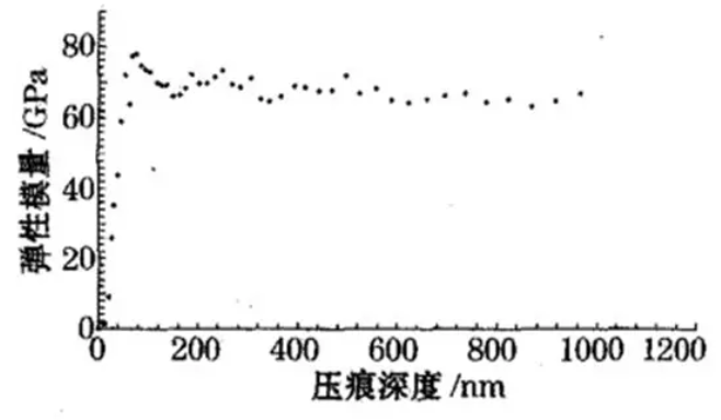 图4是最大压痕深度1μm时单晶铝弹性模量与压痕深度的关系。此外,纳米硬度仪还可以输出接触刚、实时载荷等随压头位移的变化曲线,试验者可以从中获得丰富的信息。