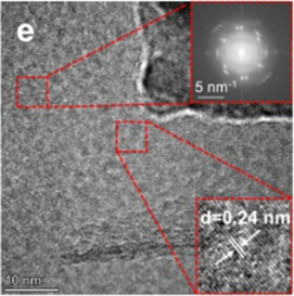 根据H2Ti3O7-MXene的HRTEM图像可知,晶格间距为0.240 nm,对应于H2Ti3O7中37.6°的(601)晶面。此外,可以清楚地识别出Ti3C2-MXene的单晶区域,其显示出规则取向的晶格条纹。进一步揭示了样品由Ti3C2-MXene和H2Ti3O7组成。