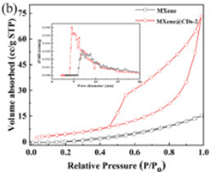 图9. MXene和MXene@CDs-2的N2吸附脱附等温线