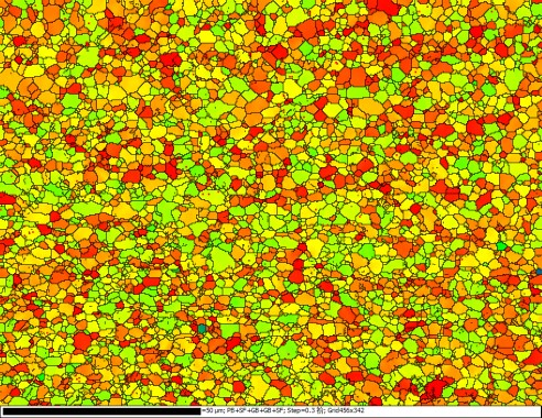 晶界图中绿色是小角度(一般15度以下),黑色是大角度(15度以上)。这个是软件分析的时候可以自行设置的,如果需要计算比例需要用颜色处理软件进行分析。(颜色和角度区分都可以通过软件调整)